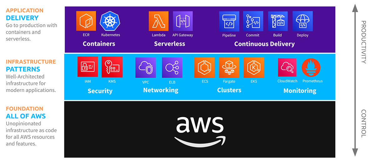 Pulumi Crosswalk for AWS supports “day one” tasks, such as creating your initial container-based workloads using Amazon Elastic Container Service (ECS)—including Fargate or Kubernetes (EKS)—and creating serverless workloads using Amazon API Gateway and AWS Lambda. Secure and cost-conscious defaults are chosen so that simple programs automatically use best practices for the underlying infrastructure, enabling better productivity with confidence.