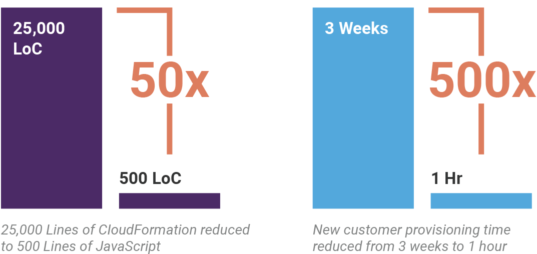 Pulumi has given our team the tools and framework to achieve a unified development and DevOps model, boosting productivity and taking our business to any cloud environment that our customers need. We retired 25,000 lines of complex code that few team members understood and replaced it with 100s of lines in a real programming language.